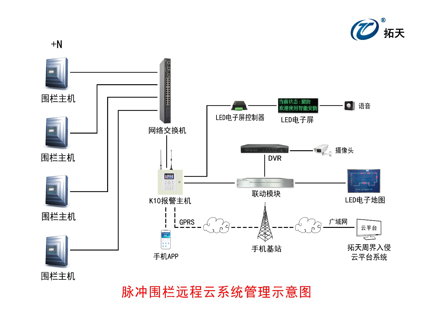 全面支持接入脈沖電子圍欄、張力電子圍欄、洩漏電纜、振動光纖、地址碼等周界報(bào)警設備 ,並(bìng)實現集中統一管理。雲平台軟件可以連入多達幾百個GPRS報(bào)警主機。