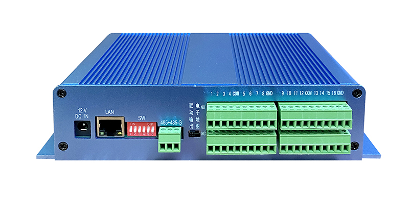 16路聯動設備 通訊方式 :RS485/網絡 設備尺寸:240*121*49mm 設備供電 :DC12V 設備功率:4W 端口說明: NC: 常閉開關量信号端口,用於(yú)接常閉型報(bào)警輸入設備的一端。