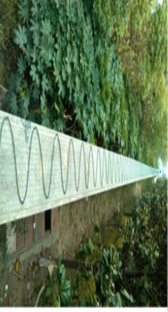在草坪下埋設振動傳感光纜時,如果該區域已經鋪上草坪,應先将需要鋪設振動傳感光纜的周界區域的草坪用草坪切割機鏟起 。周界區域寬度應不小於1.2米 ,如須提高警戒級别 ,可增加周界區域的寬度。草坪下面的土地應是土質較爲硬而緊密的泥土,如果是水分較多,軟而松散的土質會吸收振動 ,造成設備性能下降。在土層的表面沿周界方向迂回平行鋪設多道振動傳感光纜,光纜間隔距離爲25cm,即1.2米寬的區域應平行鋪設5道振動傳感光纜,如圖。振動傳感光纜應平直、緊密地附著在土層表面,可採用Φ5的鋼絲折彎成如圖所示的線卡子,每隔50cm用線卡子将振動傳感光纜緊壓在土層上,但應注意避免因壓力過大造成光纜變形。固定好光纜後,将草坪平鋪在上面,鋪設厚度5—10cm爲适,鋪設太深靈敏度太低,不利於報警信息識别。應保證草坪接合處緊密 ,以避免振動傳感光纜外露。